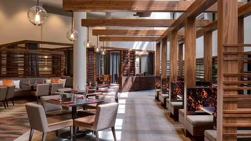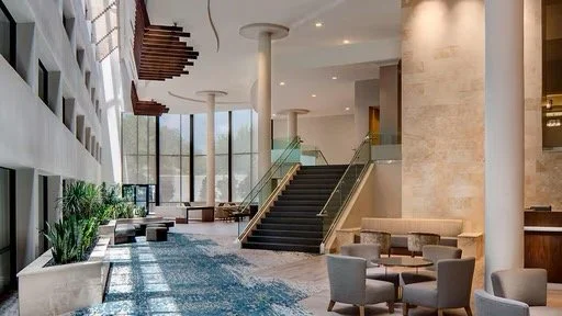 Modern, spacious lobby with inviting seating and warm ambiance.